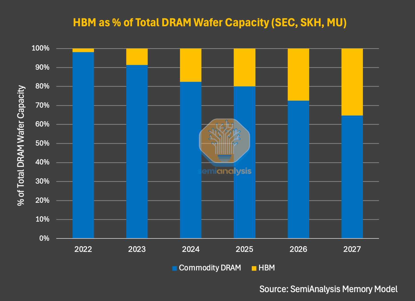 推动这些增长的因素包括:高带宽内存(HBM)产能的大幅扩张、向 EUV 光刻层数密度更高的 1b 和 1c 工艺节点快速迁移、计划于 2027 年投产的晶圆厂建设,以及整个行业范围内工艺节点迁移的加速。