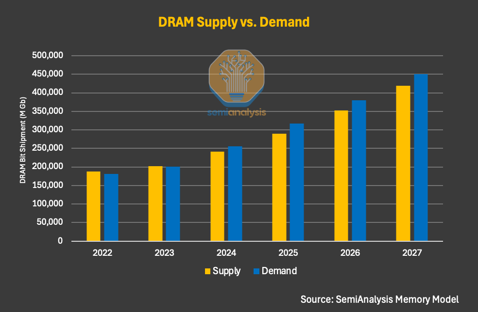 这些仅难以缓解,供应环境还会进一步恶化;因此以 2025 年四季度为基准,到 2026 年四季度,DRAM 价格可能还会再上涨约一倍。
